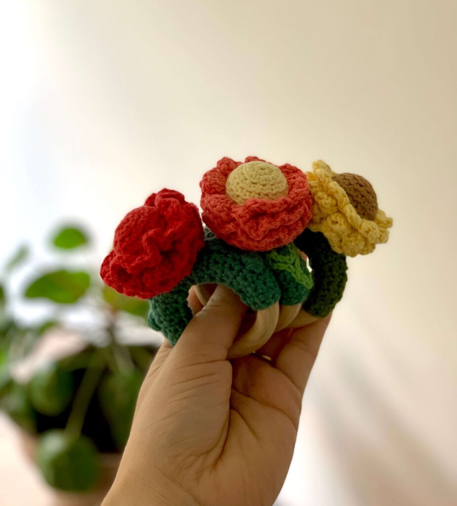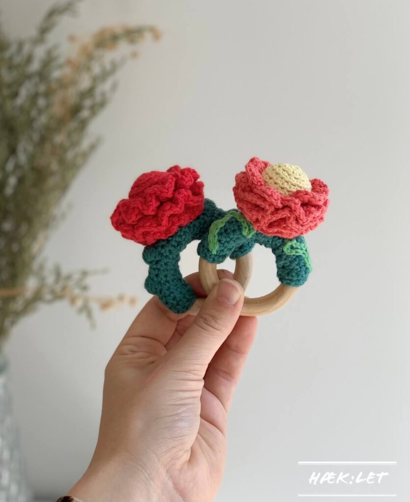 Beskrivelse – Hæklede rangler med blomstermotiv